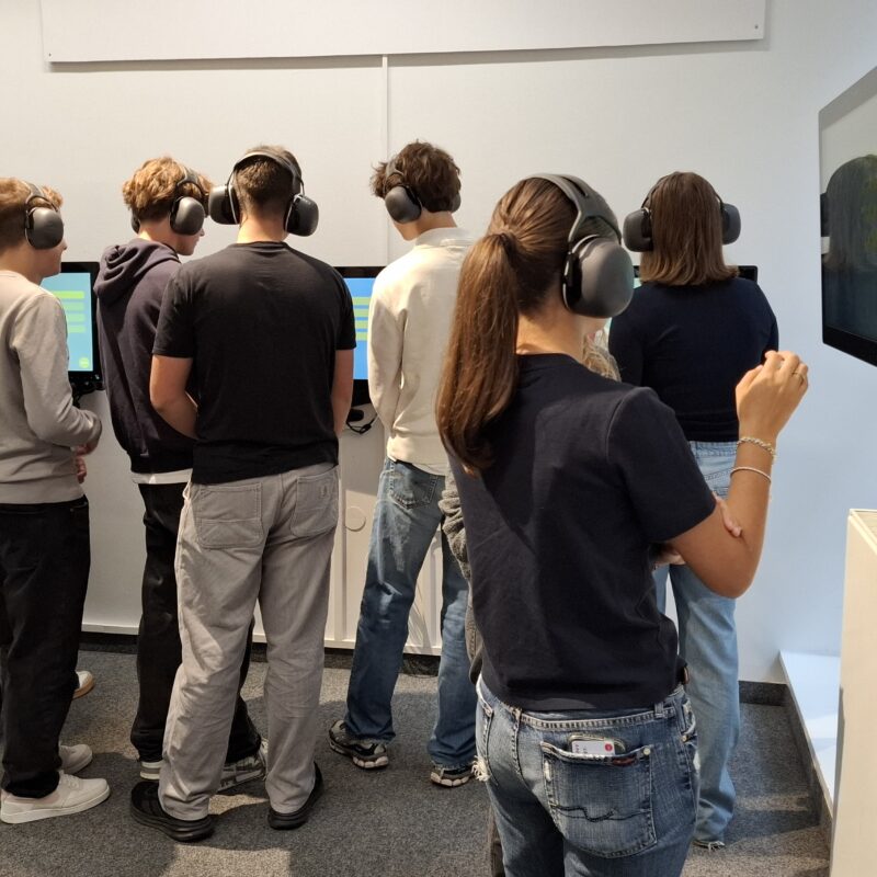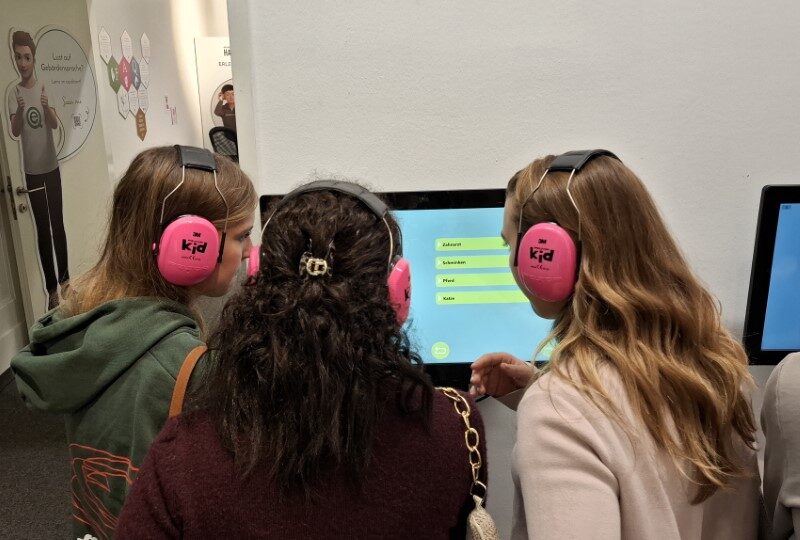 Dabei konnte jede*r Einzelne*r am eigenen Leib erfahren, was es bedeutet, ohne Gehör zu leben und sich doch mit diversen optischen und technischen Hilfsmitteln den Lebensalltag zu erleichtern. Diese erste Station war für die Teilnehmer schon sehr beeindruckend.