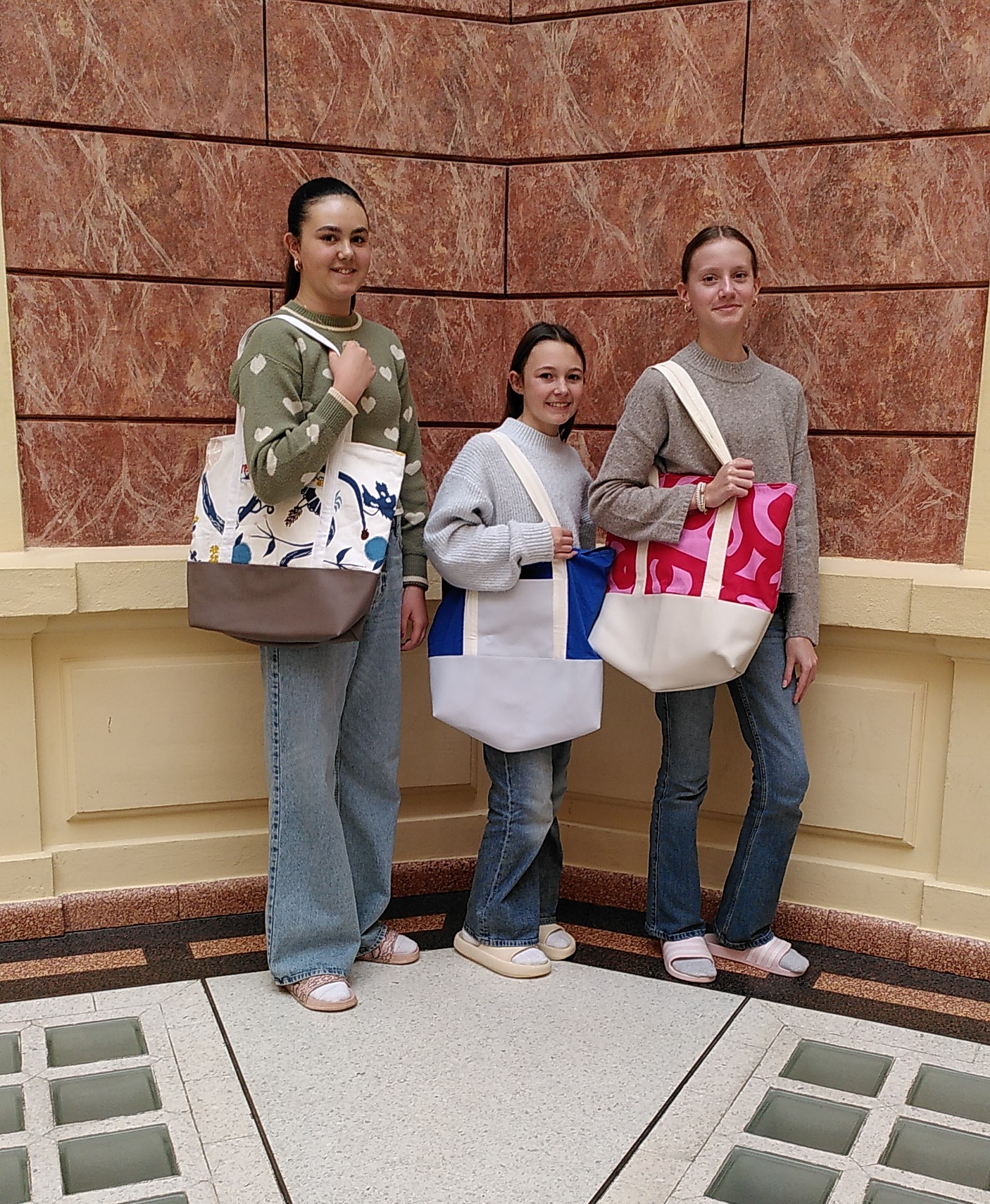 Im Rahmen des Unterrichts im Textilen Werken zeigten die Schülerinnen und Schüler der 3. Klasse unserer AHS-Unterstufe großes handwerkliches Geschick: Mit viel Kreativität entstanden individuelle Badetaschen aus Stoff und Kunstleder. Ein herzlicher Dank gilt der Firma Meisel aus Wiesen für die großzügige Unterstützung mit Materialien.