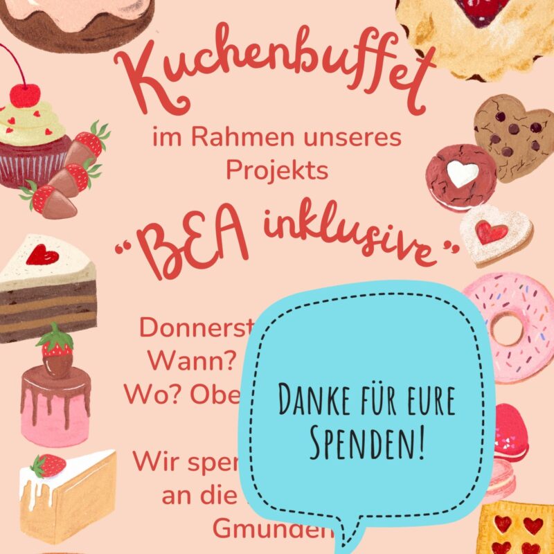 So planten Moritz Pichler und Niki Lutz ein „Projekt im Projekt“, mit dem sie es sich zum Ziel setzten, 1000 Euro an Spenden zu sammeln. Nach intensiver Planung und Arbeit fanden im Jänner und Februar zwei Kuchenbuffets in der Schule statt. Dank der Hilfe zahlreicher Eltern, Schüler*innen sowie Lehrer*innen konnte der Lebenshilfe Werkstätte Gmunden am 9.2.2026 schlussendlich die erhoffte Summe von 1000,- € überreicht werden.