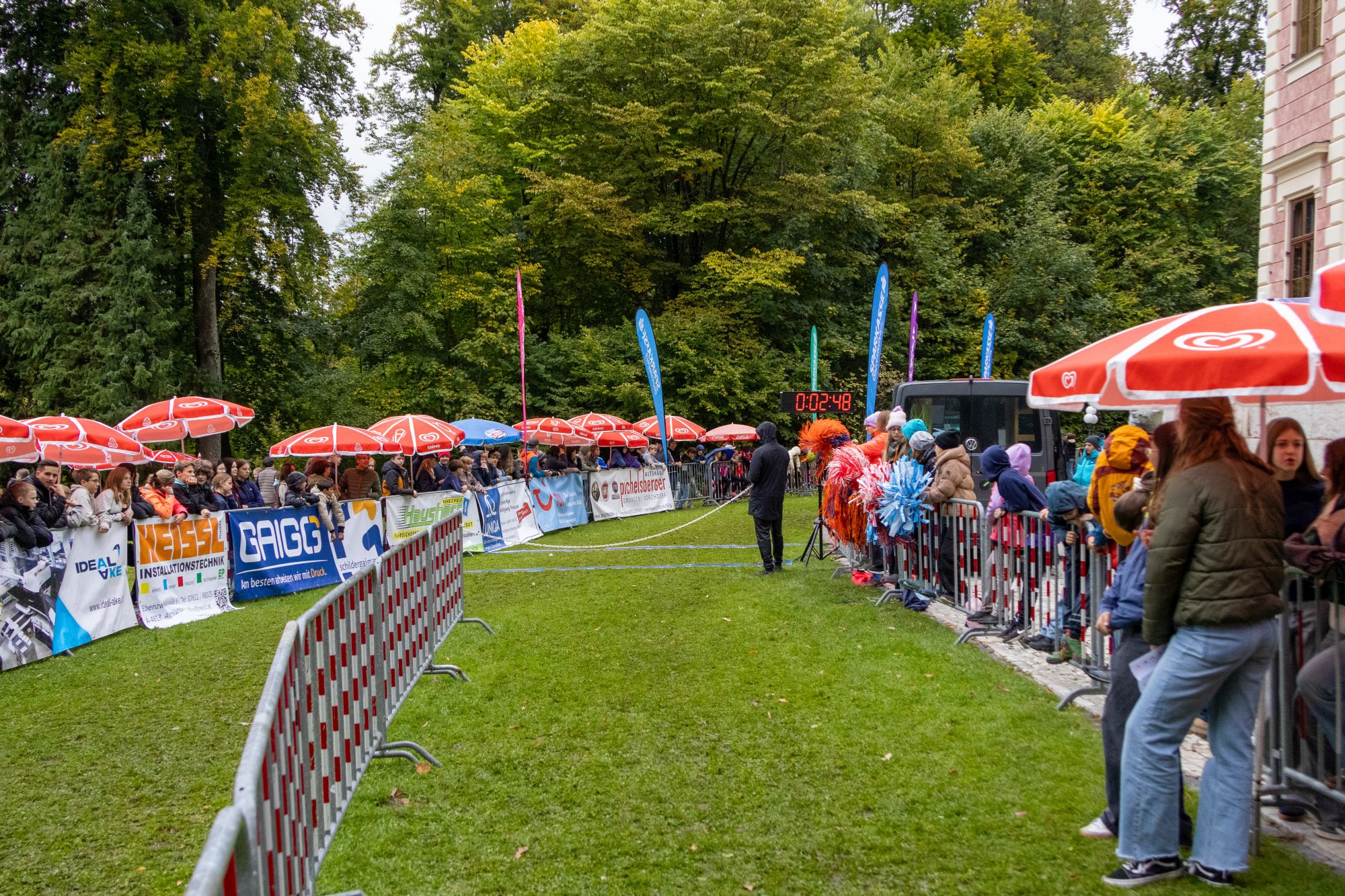 Die dennoch nasse und etwas rutschige Laufstrecke, je nach Altersgruppe zwischen 500 und 3.050 Meter lang, war heuer folglich besonders selektiv, gesäumt wurde sie von hunderten Laufsport-Begeisterten und Fans aus den eigenen Lagern, die die Läuferinnen und Läufer lautstark anfeuerten und zu Bestleistungen antrieben. Erstmals konnte man den Wettkampf per Livestream auch indoor in der Pausenhalle verfolgen, ermöglicht von der für die Zeitnehmung verantwortlich zeichnende Firma time2win.