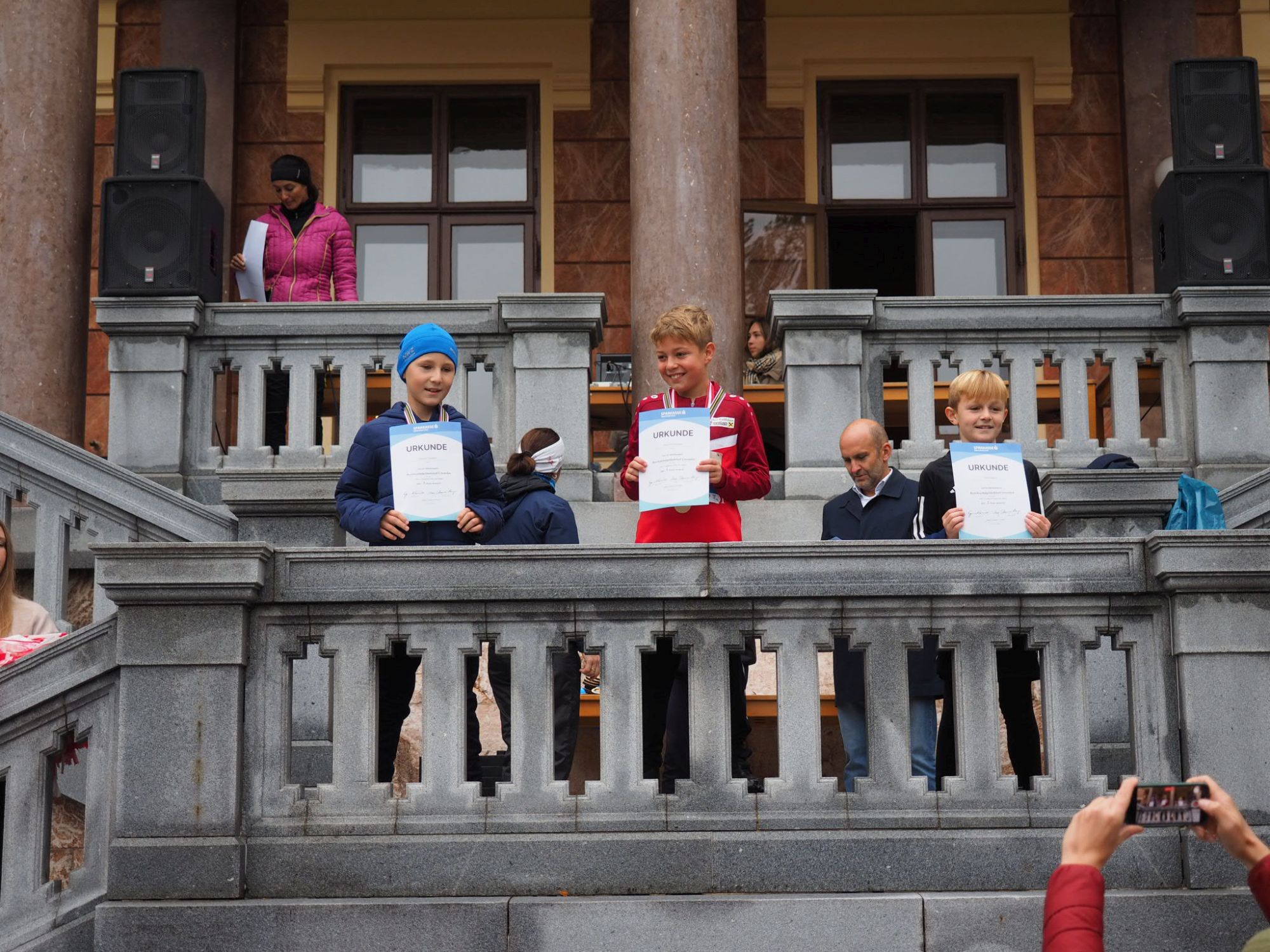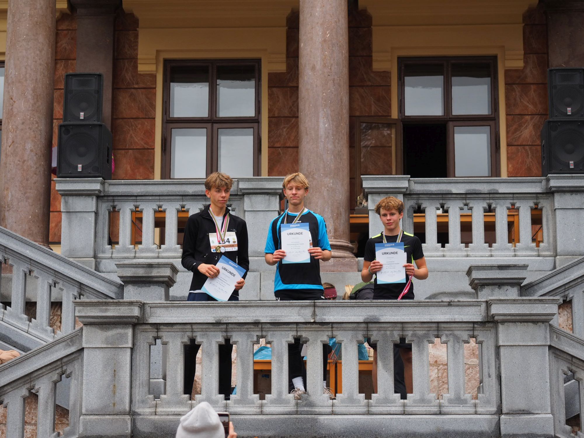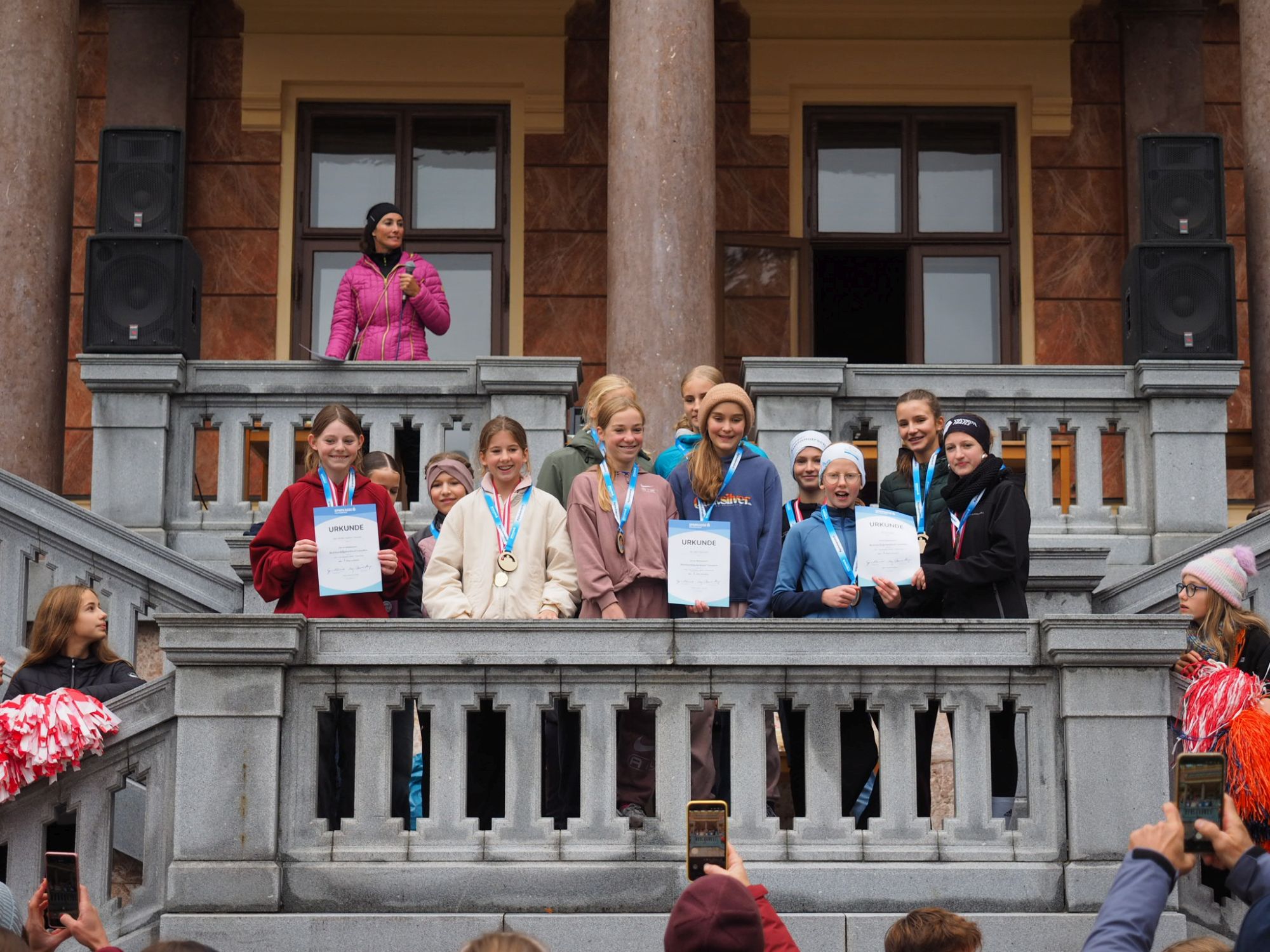 Trotz des herbstlichen Wetters herrschte im Start-Ziel Bereich vor dem Schloss wieder euphorische Stimmung und die Siegerinnen und Sieger strahlten statt der Sonne vor der malerischen Kulisse samt Traunsee und Traunstein mit ihren Medaillen um die Wette.